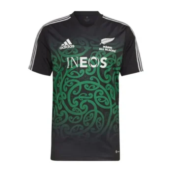 - Maillot All Blacks (Adidas) : noir iconique, fougère argentée, tissu anti-transpiration pour un confort optimal.