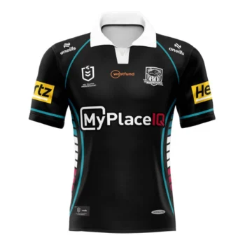 | Penrith Panthers | Noir + rouge/orange (bandes horizontales) | Édition rétro et hommage titres, maillot Indigenous avec œuvre aborigène |