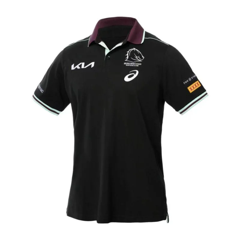 Polo Officiel Noir – Brisbane Broncos 2025 x ASICS