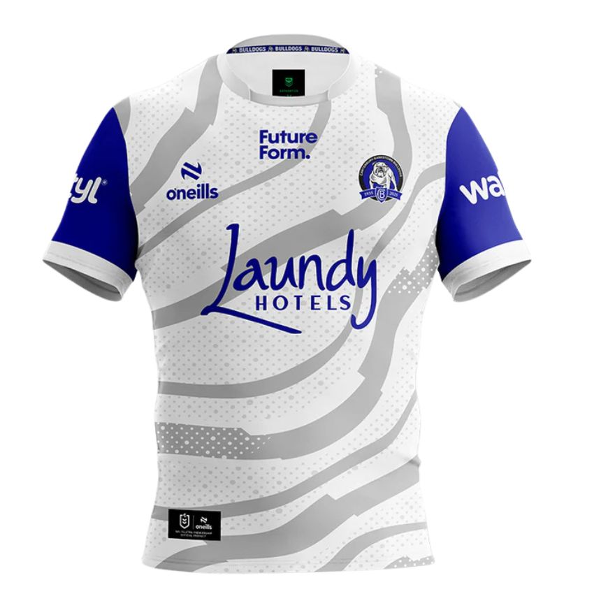 Entrainez-vous aux côtés des Canterbury-Bankstown Bulldogs avec ce maillot training officiel 2025.