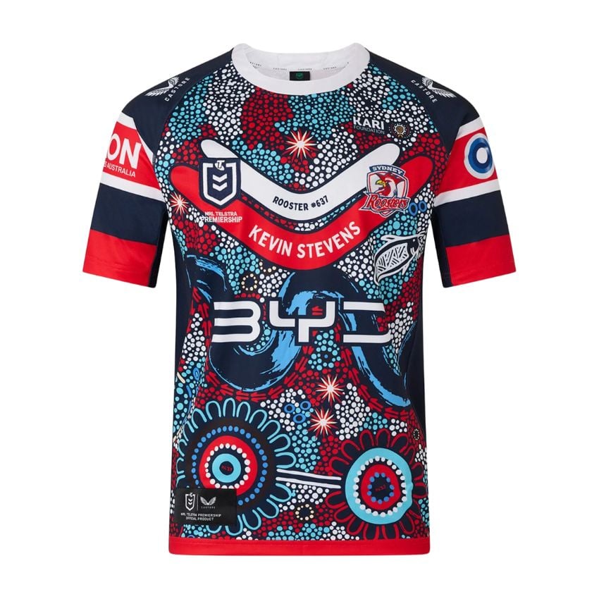 Porté spécialement lors de la Journée des Autochtones, le maillot Indigenous Sydney Roosters 2025 est conçu par l’artiste Jason Ridgeway.